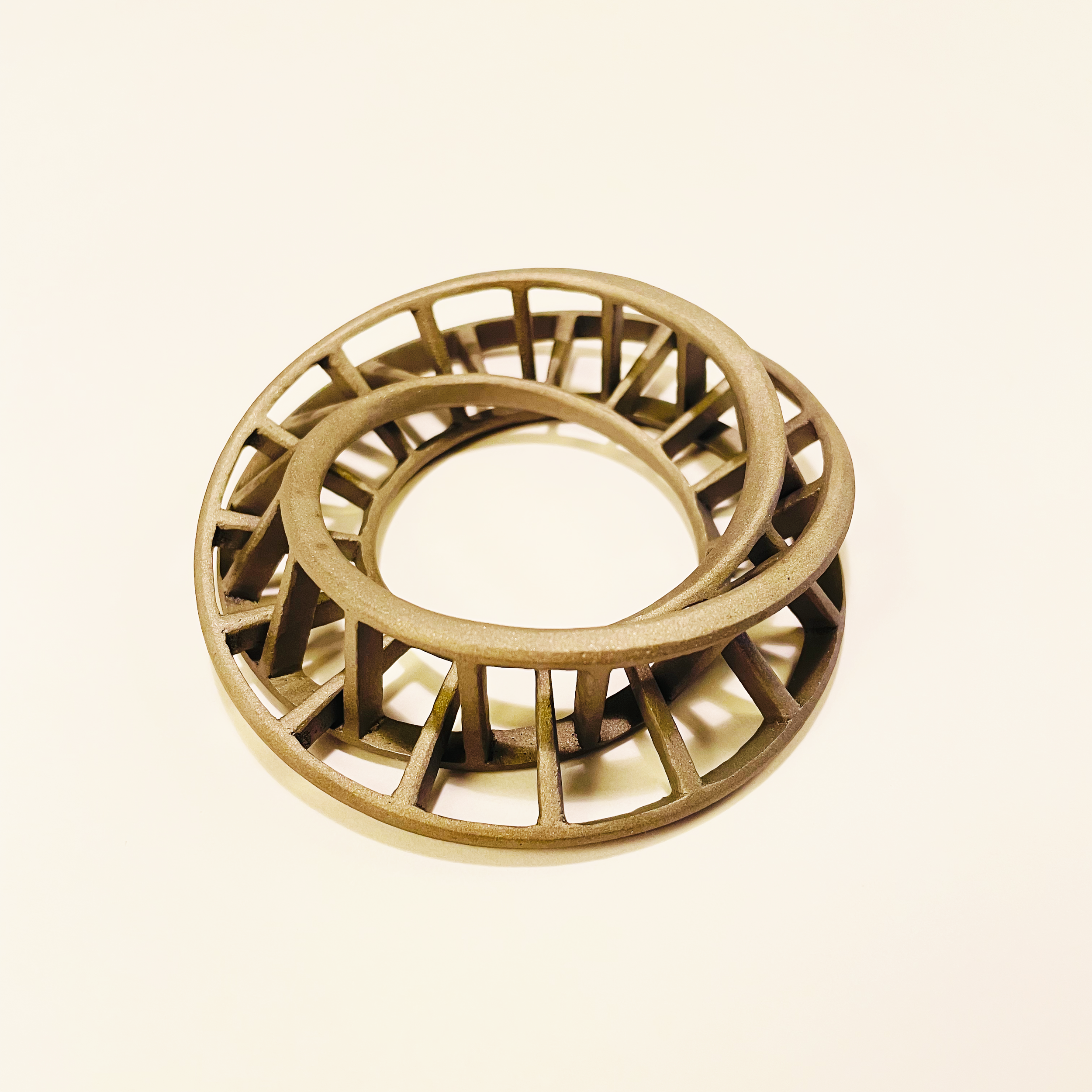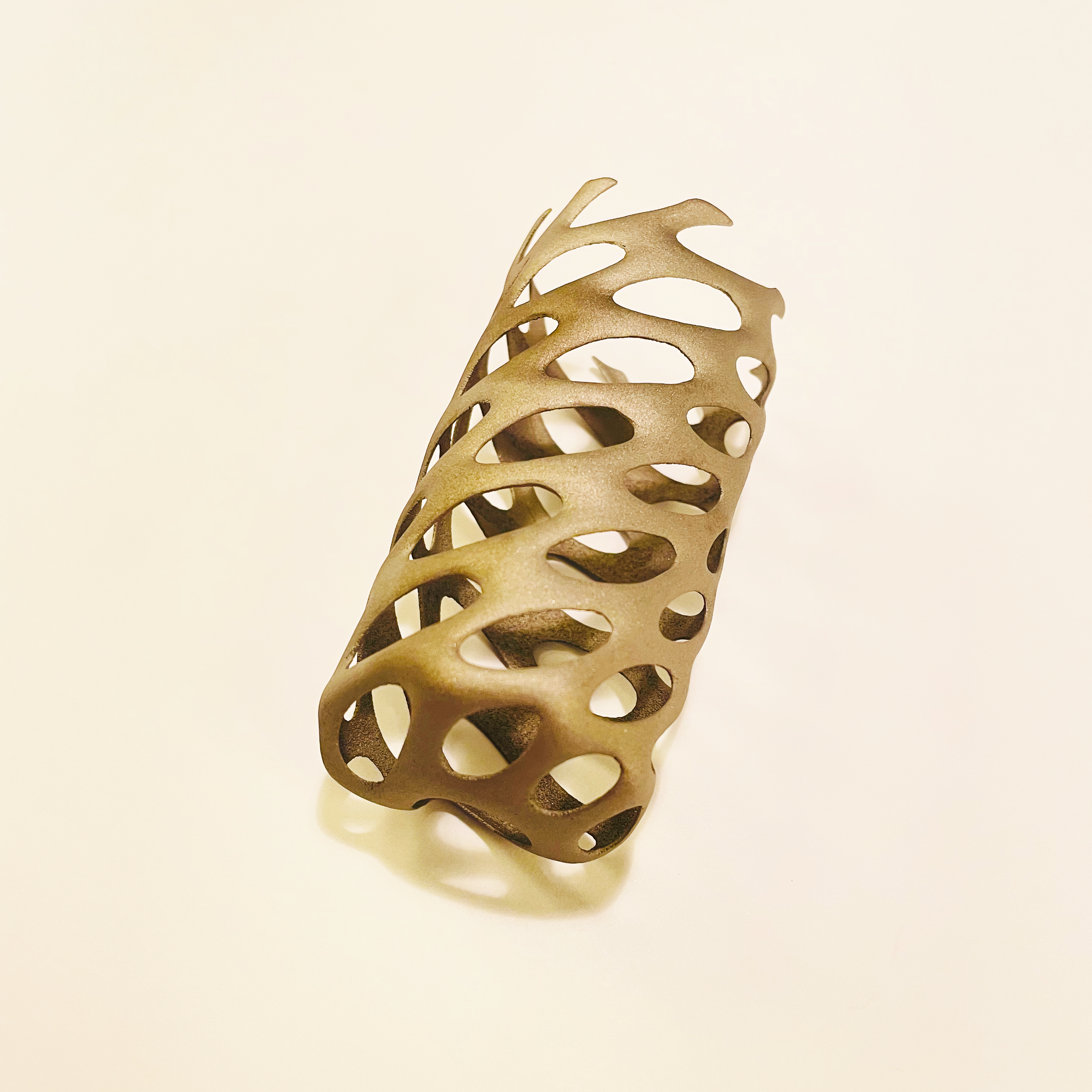 Our matte finish highlights the natural titanium texture produced during metal 3D printing on the Renishaw AM400 system. After printing, parts undergo bead-blasting to remove surface powder residue and achieve a uniform, low-gloss metallic appearance. The result is a clean, modern industrial aesthetic with subtle surface grain, ideal for functional components and customers who prefer a refined, understated titanium look. This finish preserves mechanical performance and material integrity while providing a professional, stable surface suitable for both engineering and consumer applications.